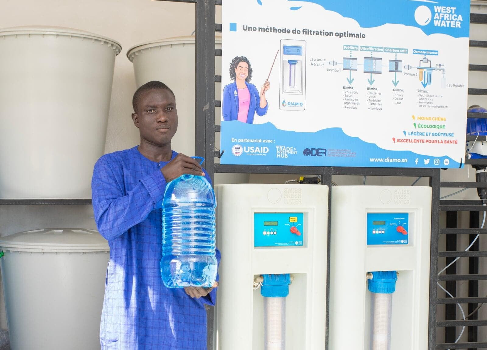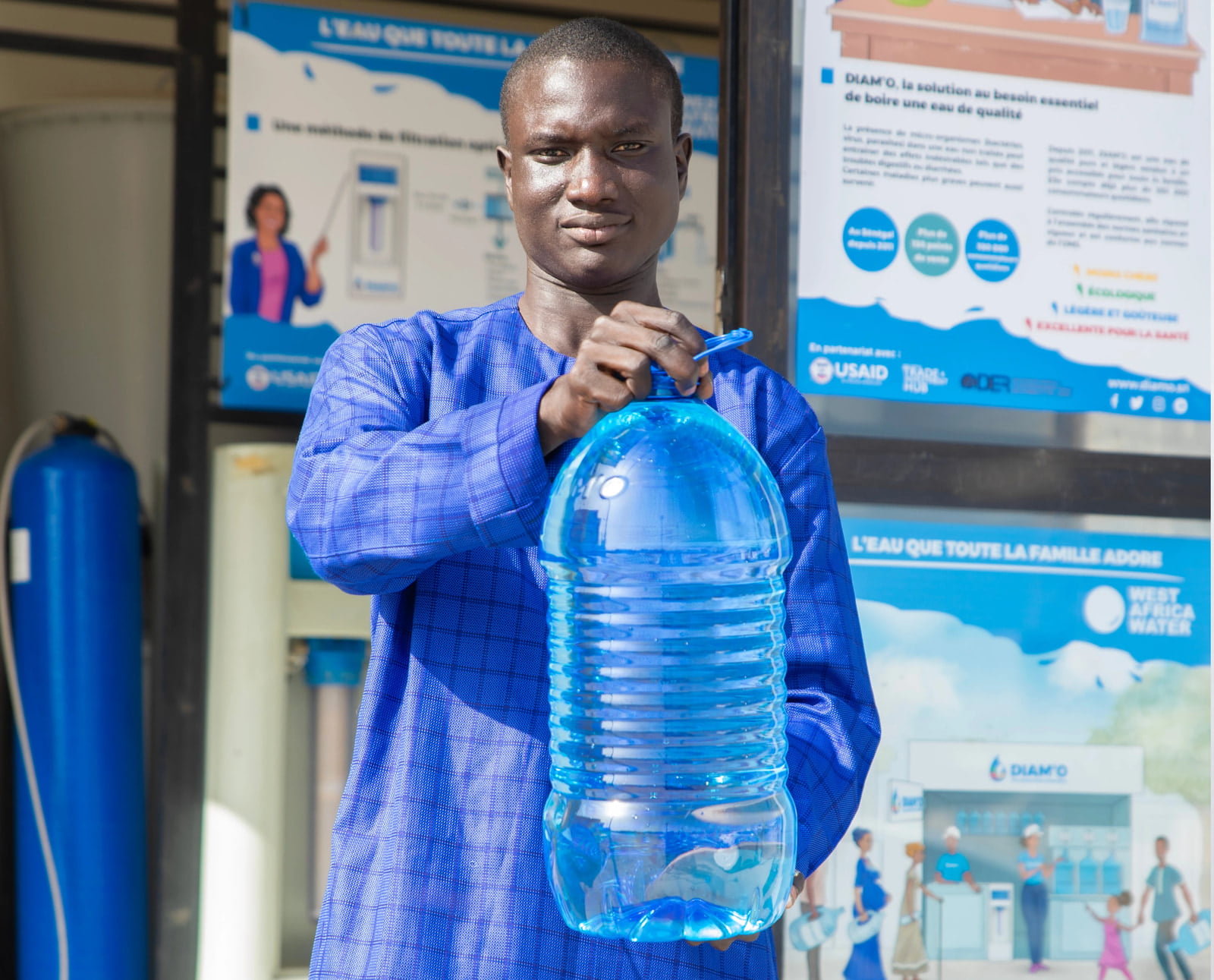 Diam'O démocratise l'accès à une eau potable de qualité supérieure pour les populations du Sénégal. Leur modèle repose en partie sur un réseau de kiosques franchisés et locaux équipés d'unités de traitement d'eau modernes et interconnectées.